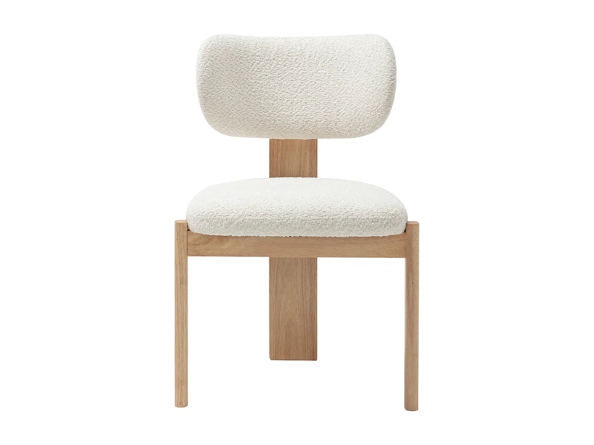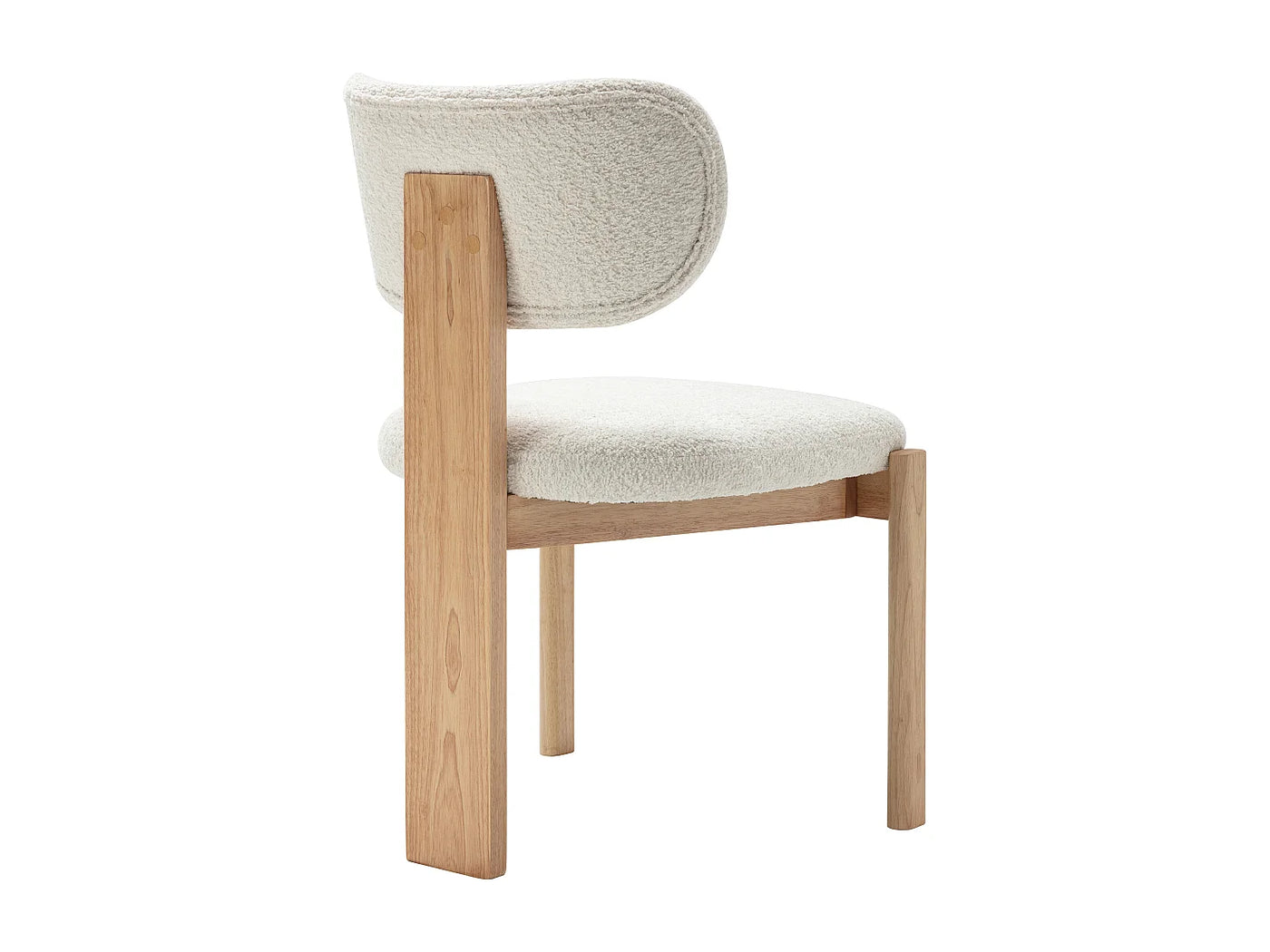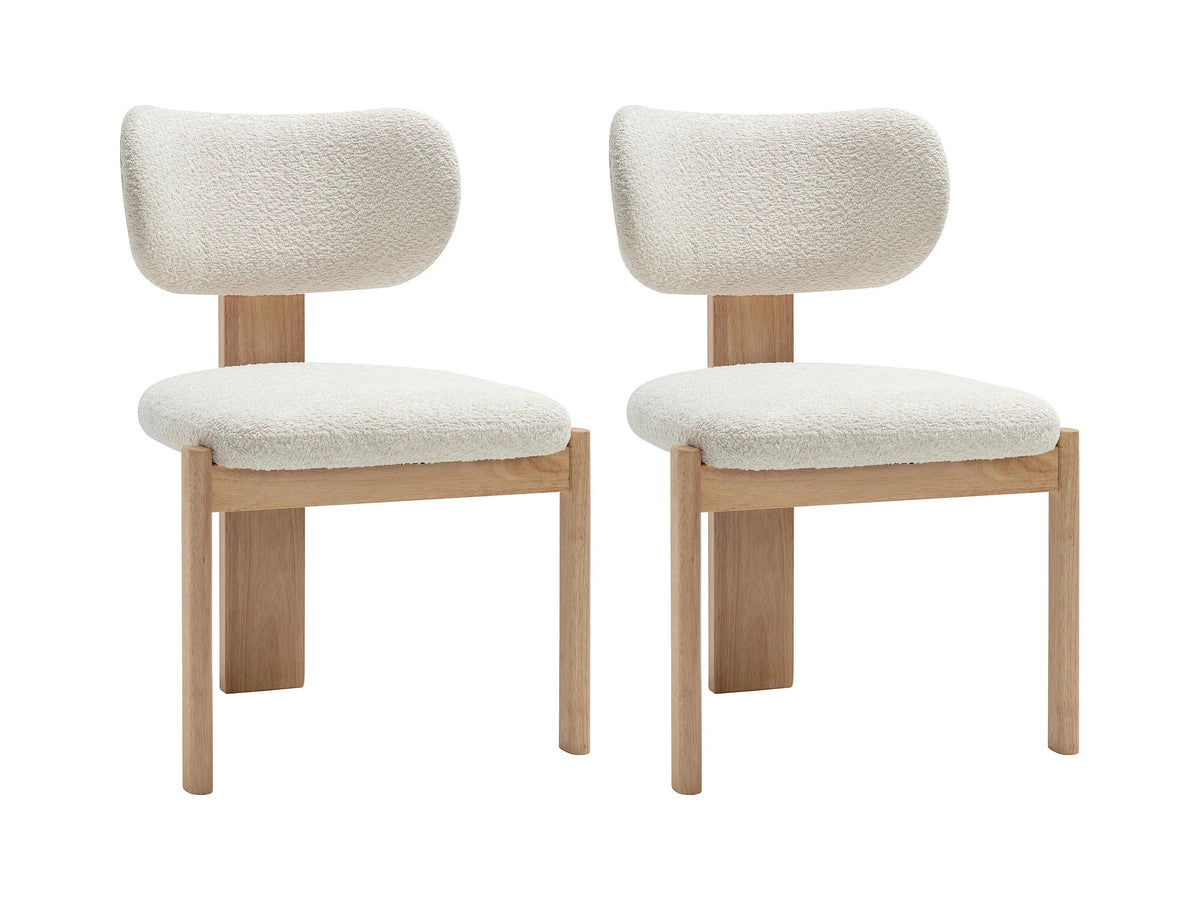 Lot de 2 chaises en tissu bouclette et bois d'hévéa naturel - Crème 56x85x60