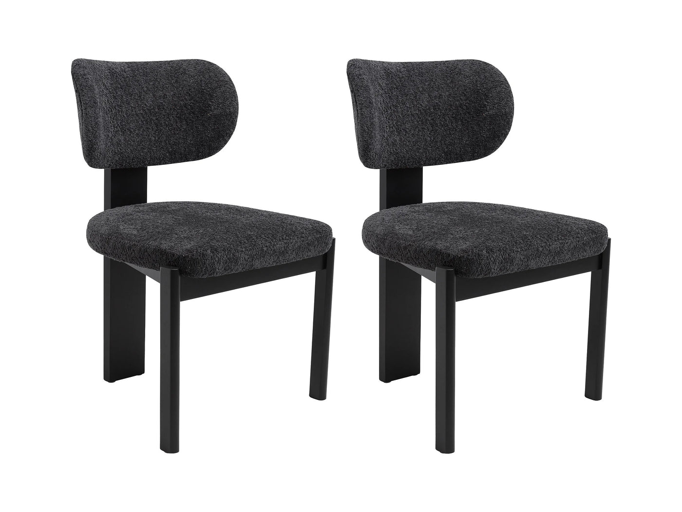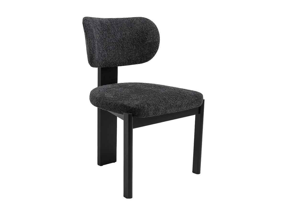 Lot de 2 chaises en tissu bouclette et bois d'hévéa noir - Noir 56x85x60