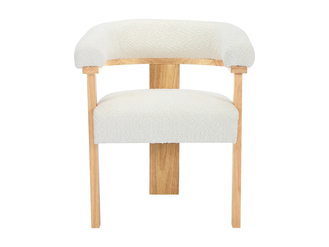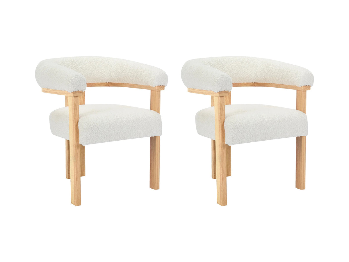 Lot de 2 chaises avec accoudoirs en tissu bouclette et bois d'hévéa naturel - Blanc 84x78x60
