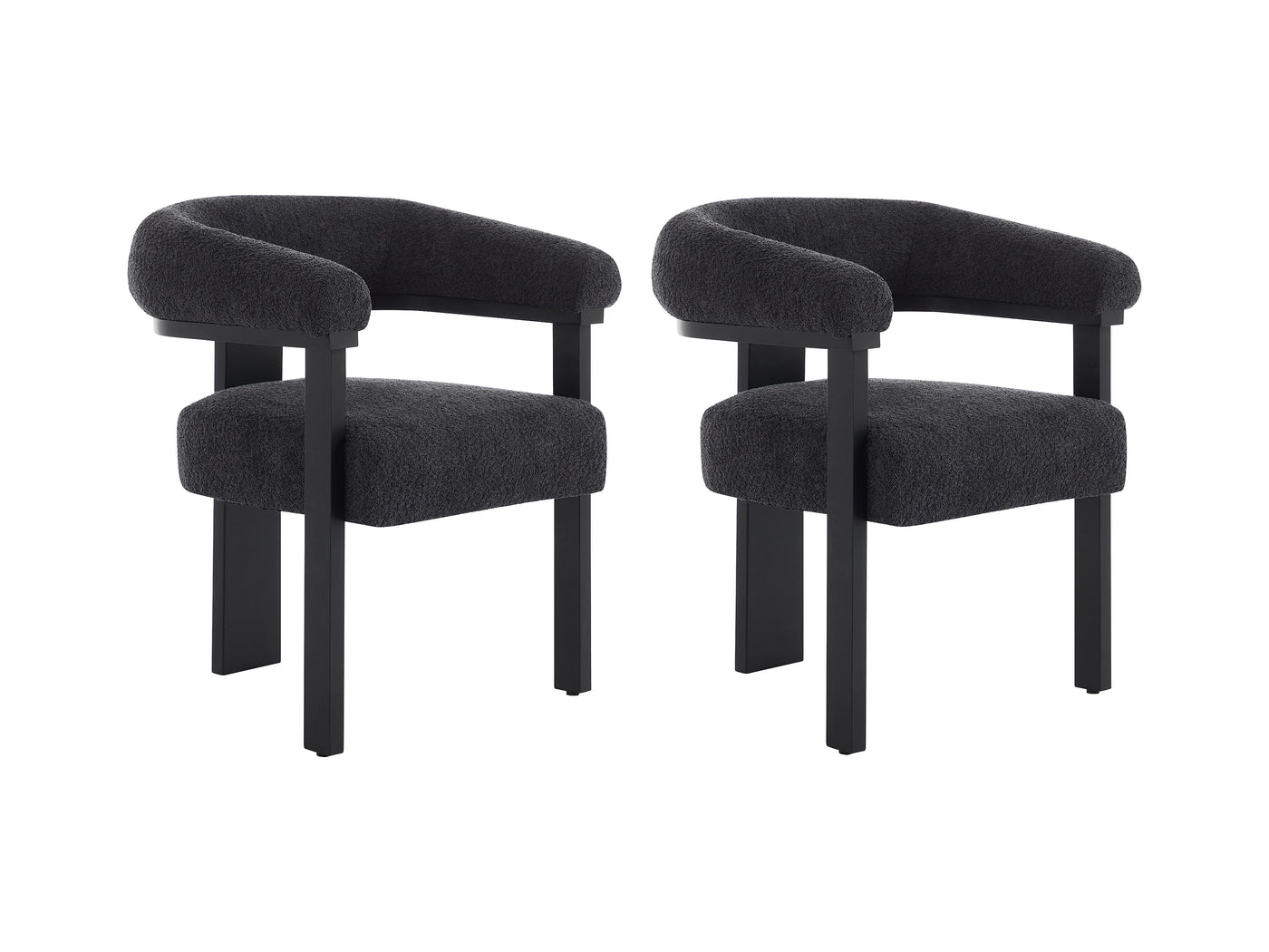 Lot de 2 chaises avec accoudoirs en tissu bouclette et bois d'hévéa noir - Anthracite foncé 84x78x60