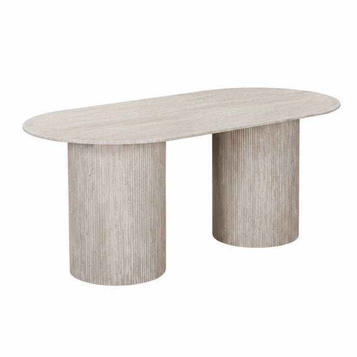 Table basse ovale en granite couleur travertin 180 cm