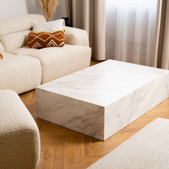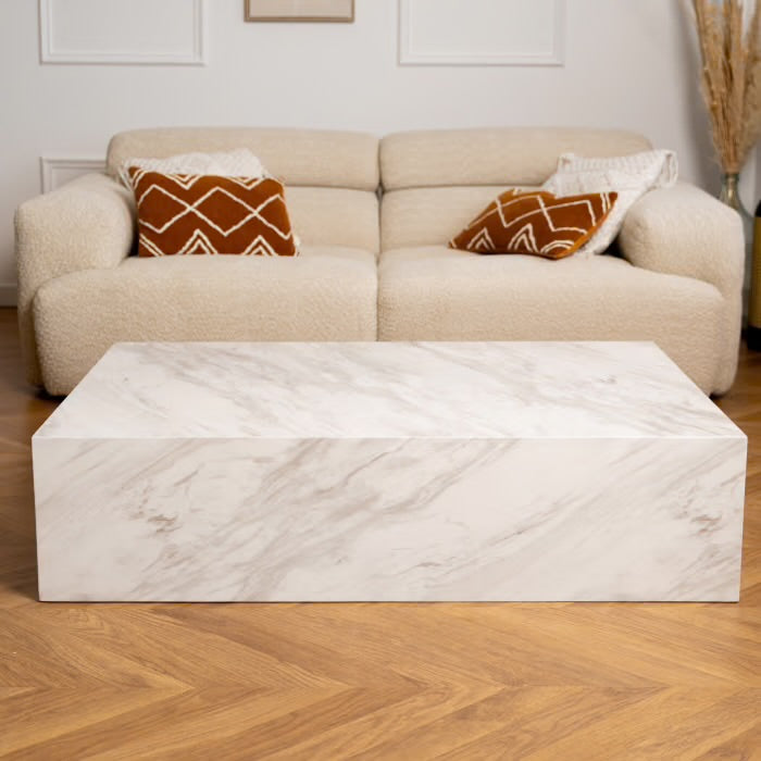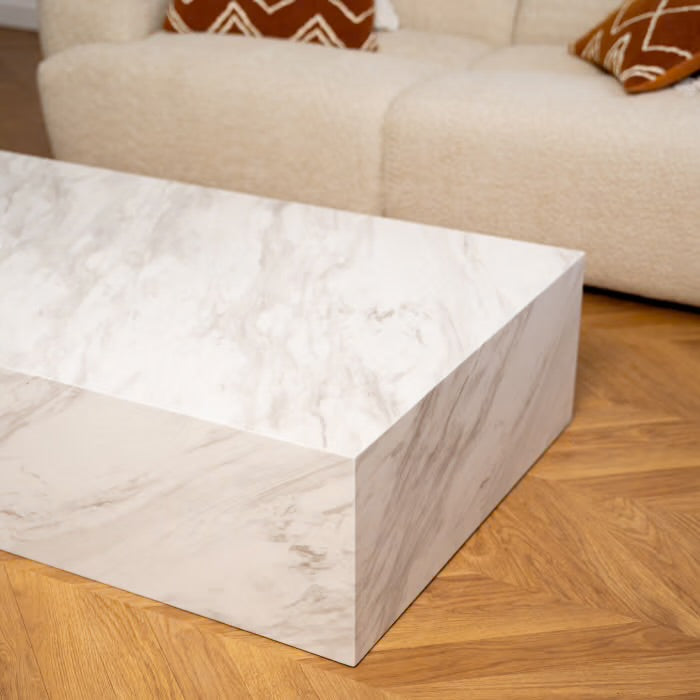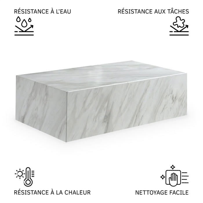 A la recherche d’une pièce de design unique ?. Découvrez notre somptueuse table basse rectangulaire en marbre d’ingénierie blanc .Pourvue...